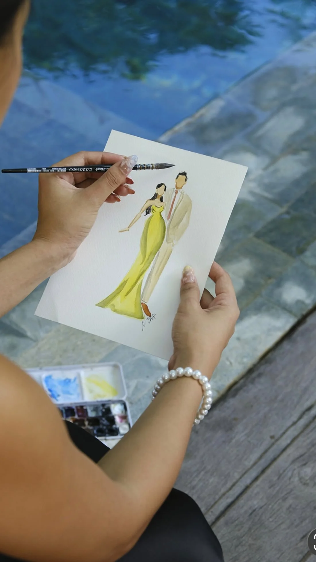 As a Live Event Illustrator, I paint real-time portraits of your guests during weddings, brand activations, and private events. Whether it’s a dreamy ceremony or a Luxury celebration worldwide, I capture the magic while it’s happening so your guests go home with more than memories… they go home with art.