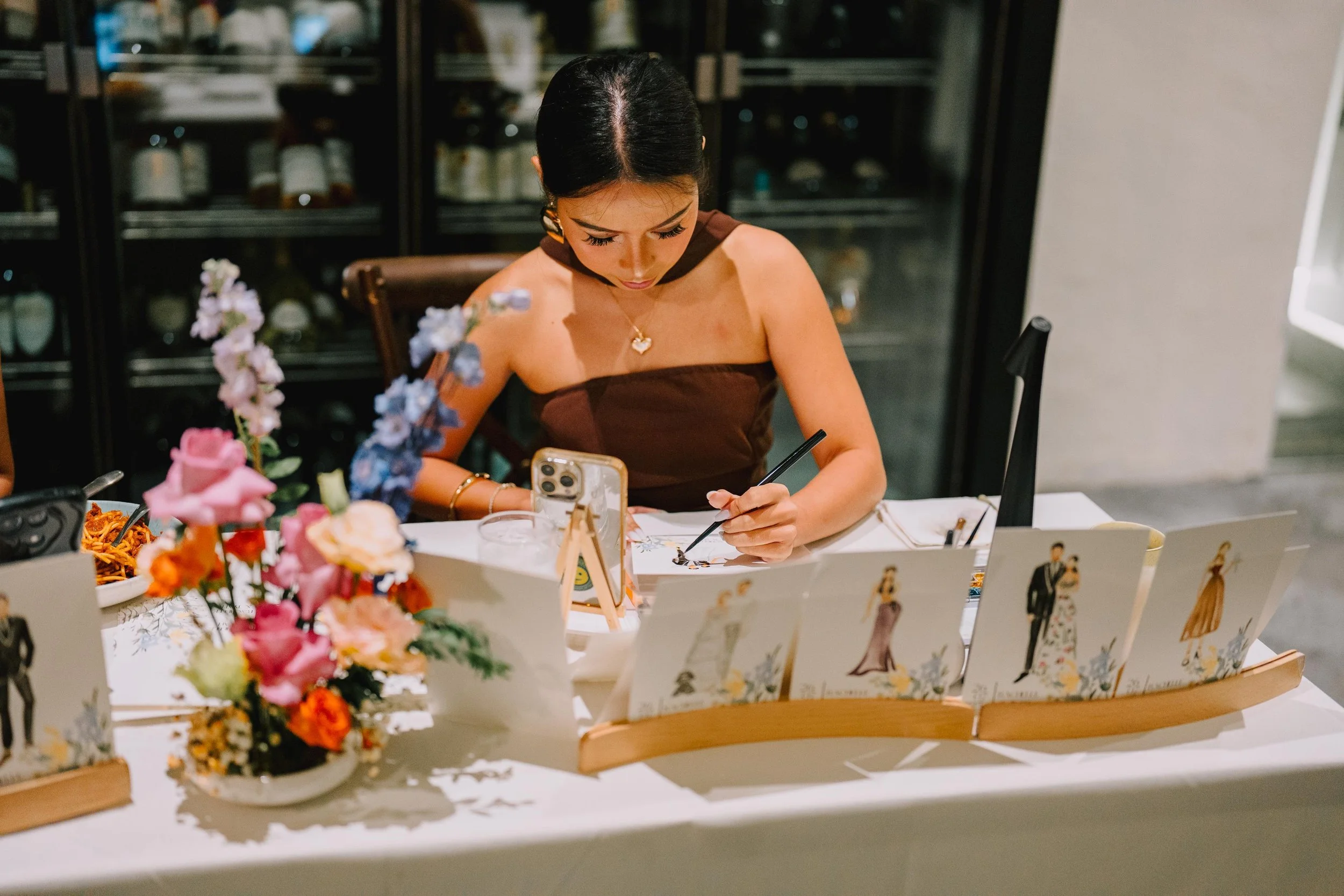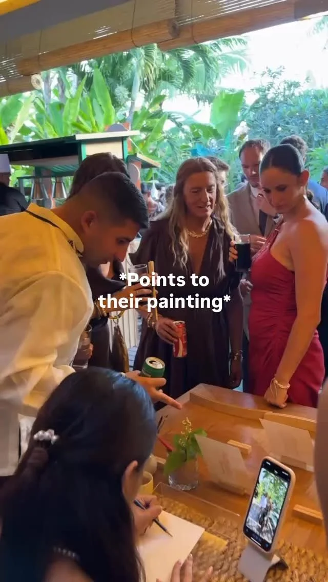 As a Live Event Illustrator, I paint real-time portraits of your guests during weddings, brand activations, and private events. Whether it’s a dreamy ceremony or a Luxury celebration worldwide, I capture the magic while it’s happening so your guests go home with more than memories… they go home with art.