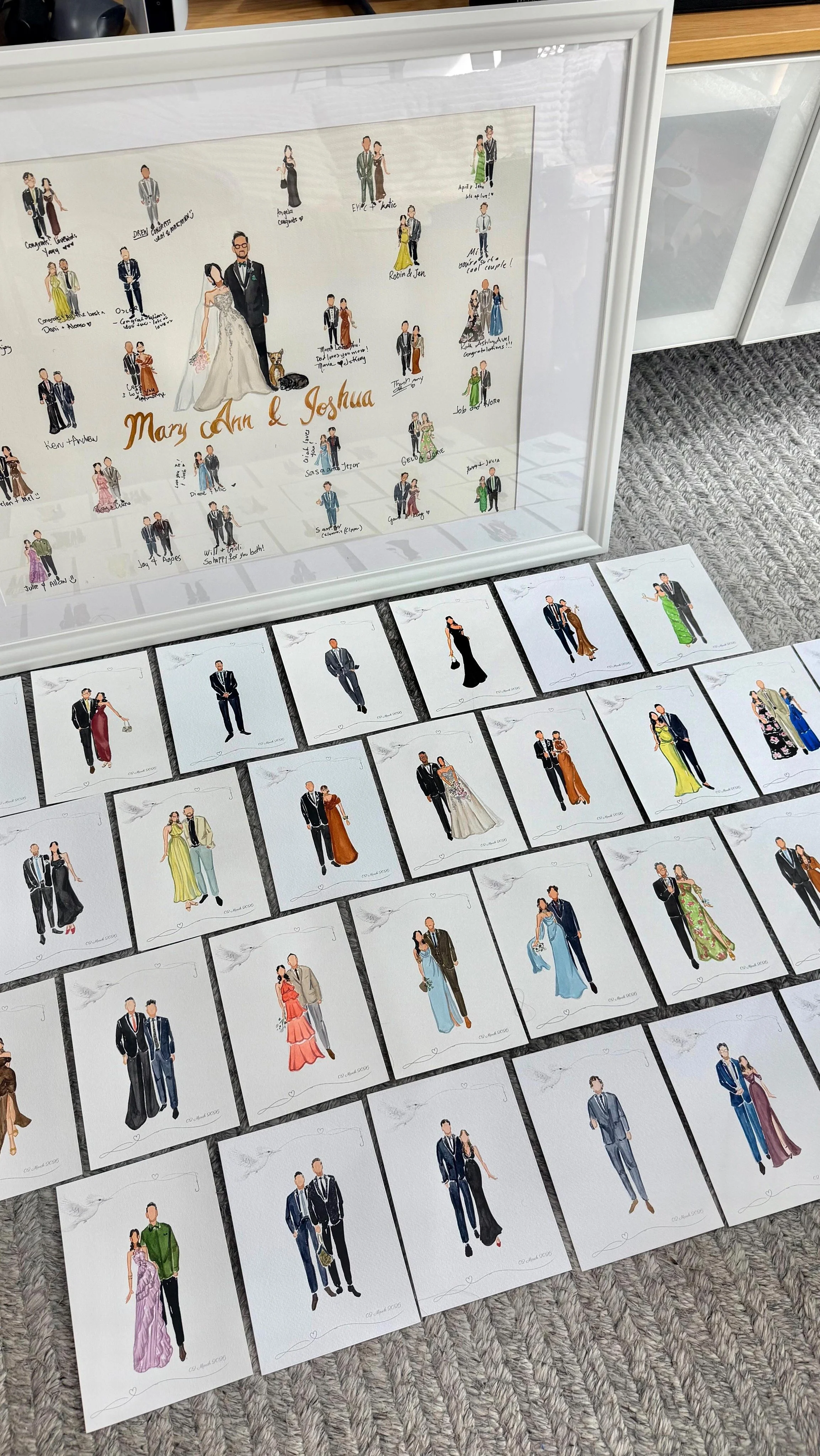 Guests may sign beside their portrait on the wedding day, or you may keep it as a finished artwork.