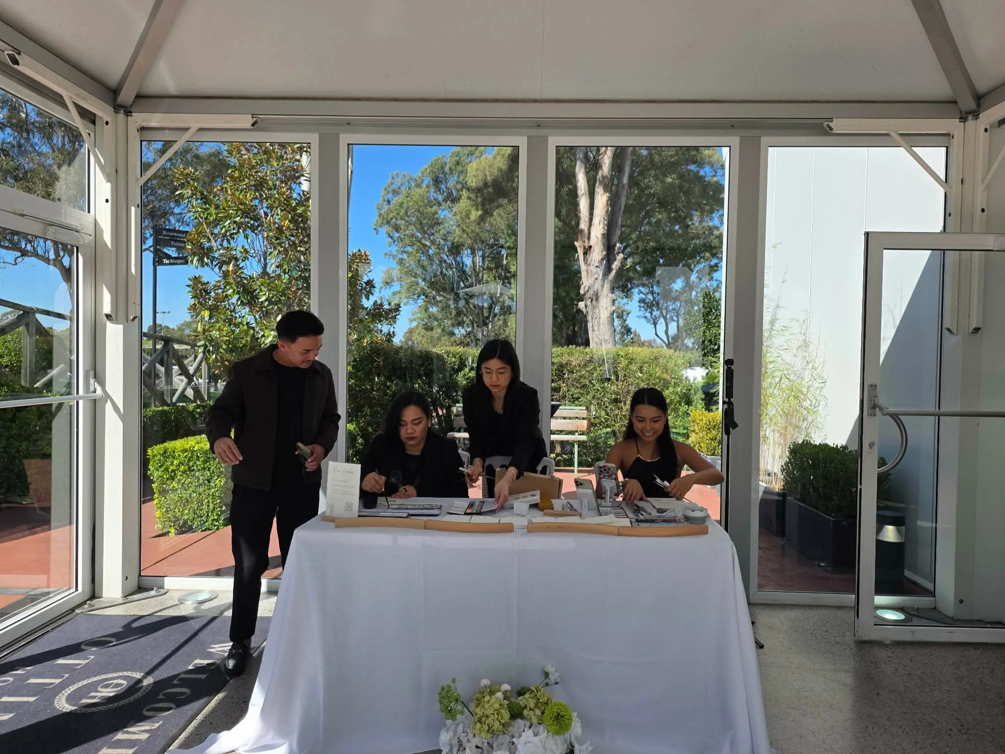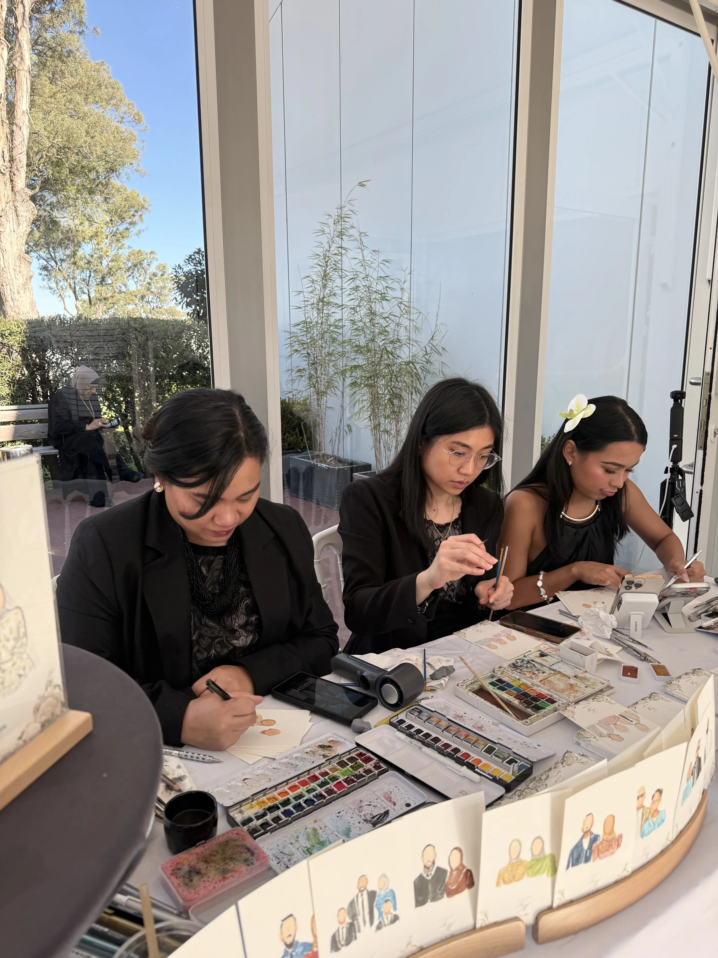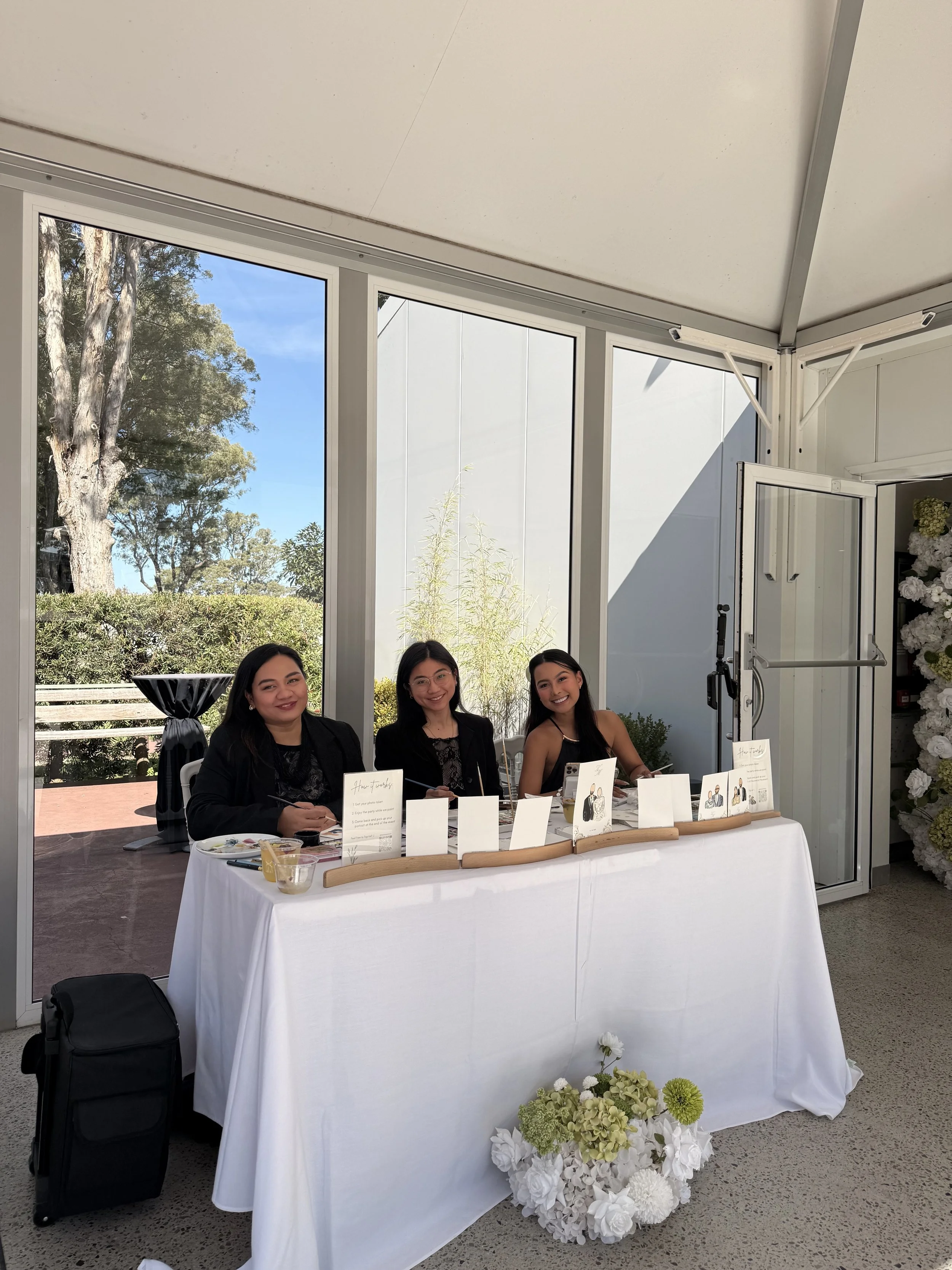 Together with our assistant and host, Dale, who has been in Australia for three years, we were able to keep the guest illustration experience smooth, organised, and enjoyable throughout the wedding.